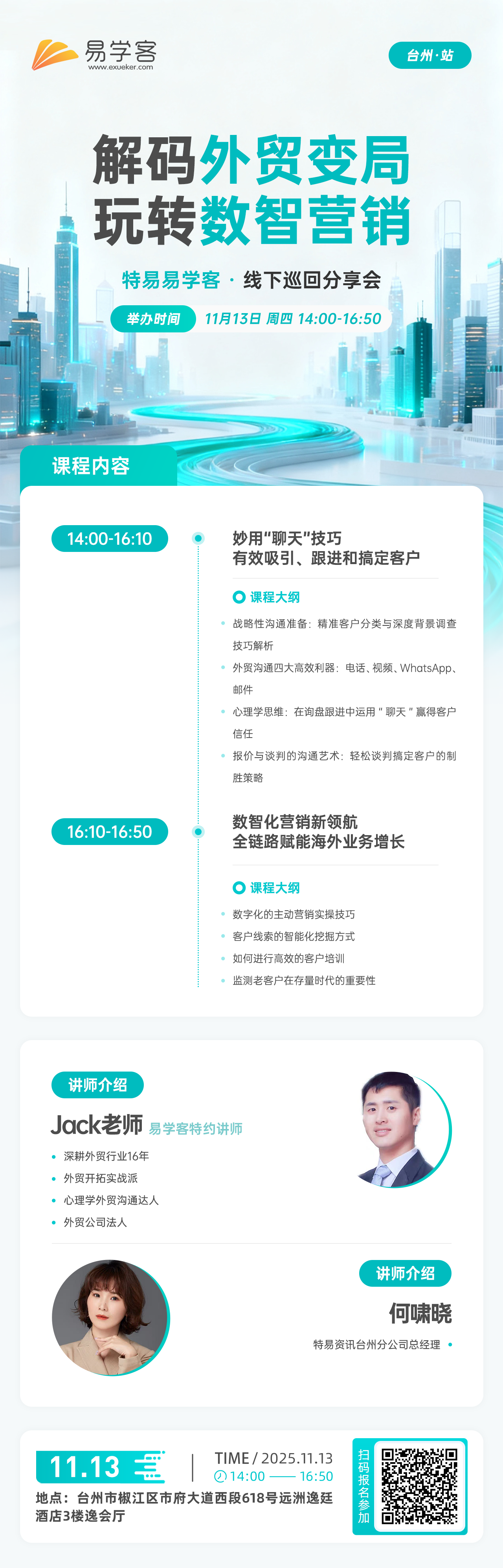 对象 | 企业BOSS,外贸销售,外贸团队 | |