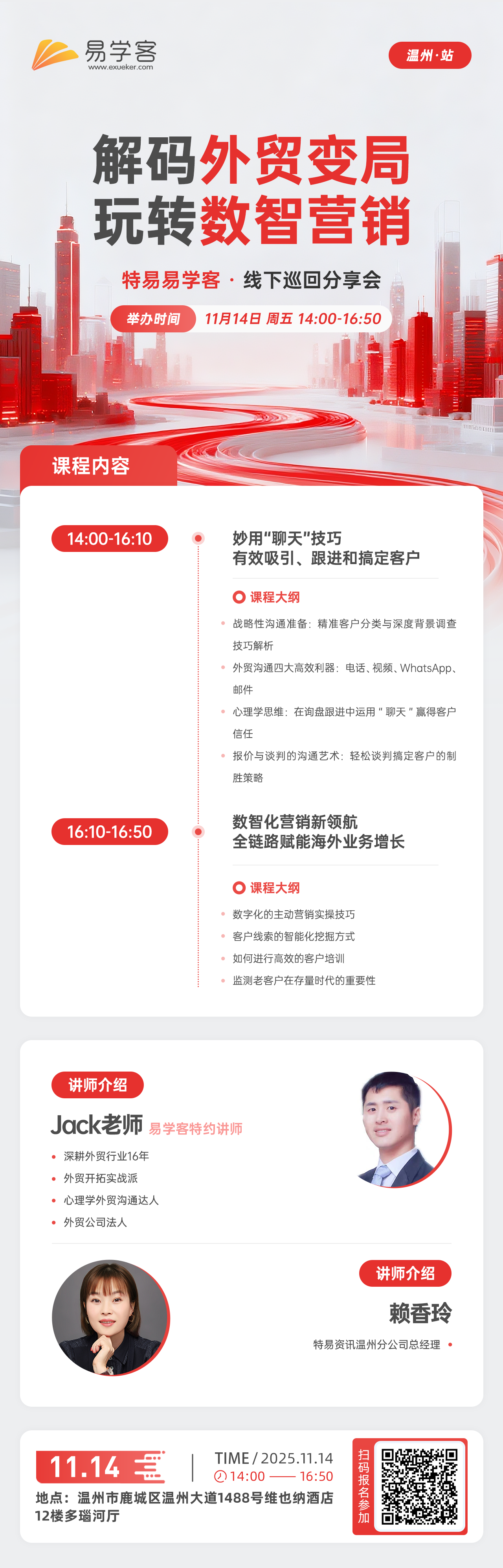 对象 | 企业BOSS,外贸销售,外贸团队 | |